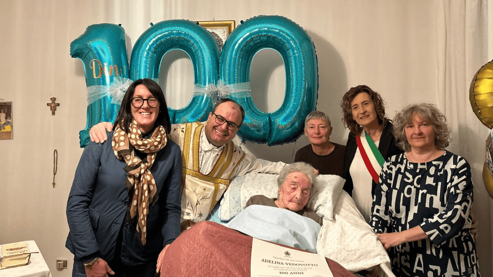 “A Dina vanno gli auguri più sinceri della sindaca Fiorella Ravagnolo, della vice Elena Ravagnolo, dell’Amministrazione comunale e di tutta Borso del Grappa: 100 anni di fede, storia, memoria e amore per la nostra comunità“.