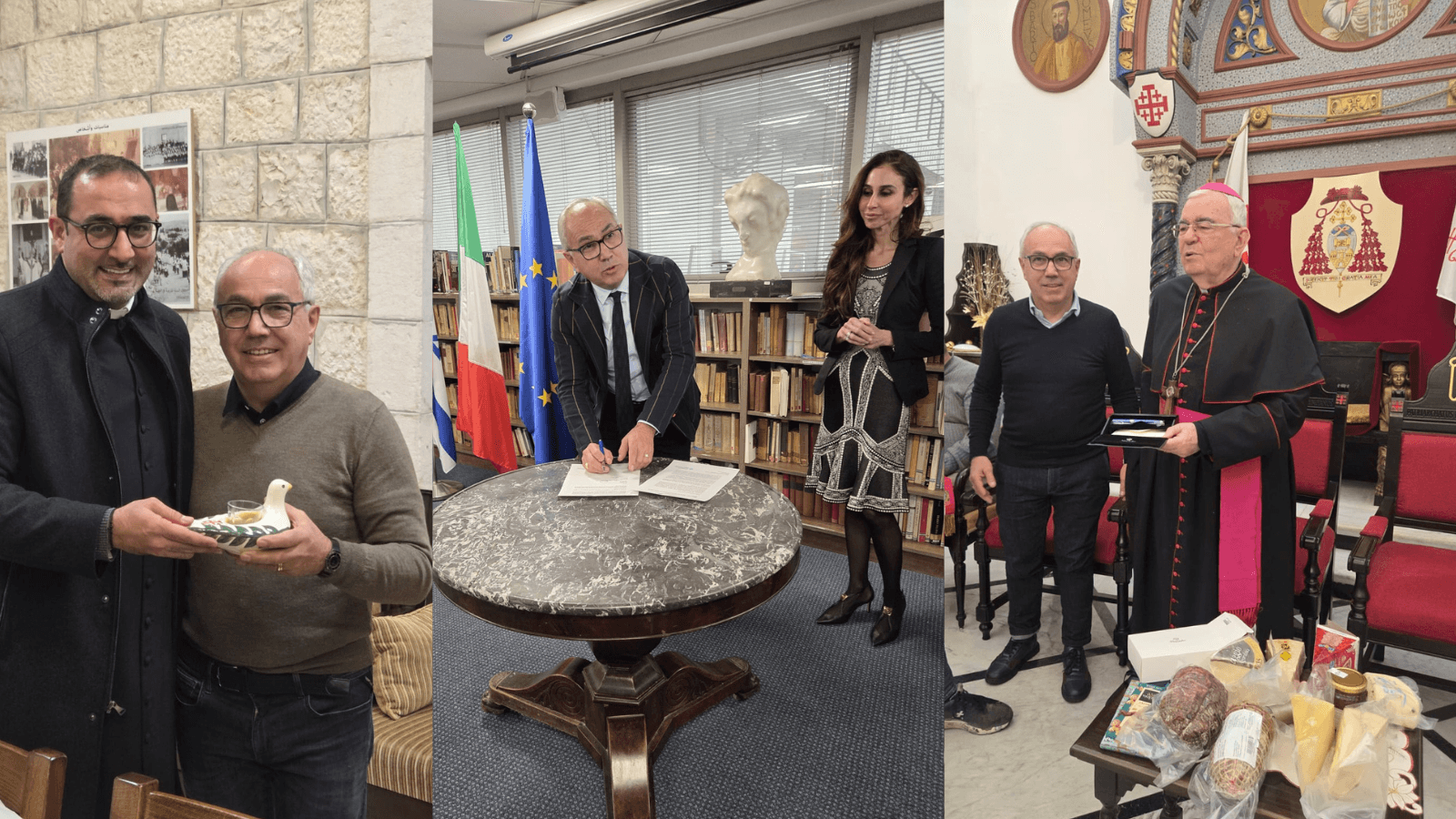 La delegazione ha incontrato, tra gli altri, le Camere di Commercio locali e la Camera di Commercio Israele–Italia, sindaci e rappresentanti delle istituzioni civili e religiose, associazioni economiche, educative e culturali, realtà impegnate nel dialogo, nella cooperazione internazionale e nel sostegno umanitario. Si sono poi svolte, con il supporto in loco dell’Associazione Pro Terra Sancta, collegata alla Custodia di Terra Santa, visite ai Luoghi Santi della cristianità, accanto agli incontri istituzionali.